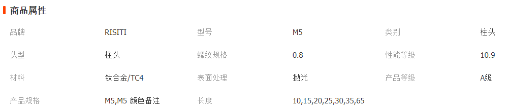 M5鈦合金TC4螺絲電動(dòng)摩托車改裝螺栓長度10/15/20/25/30/35/65mm